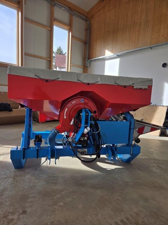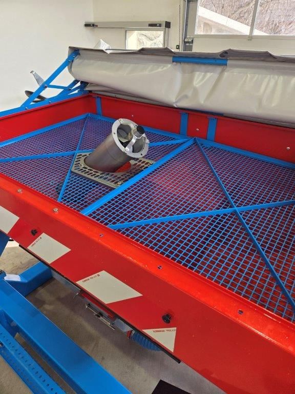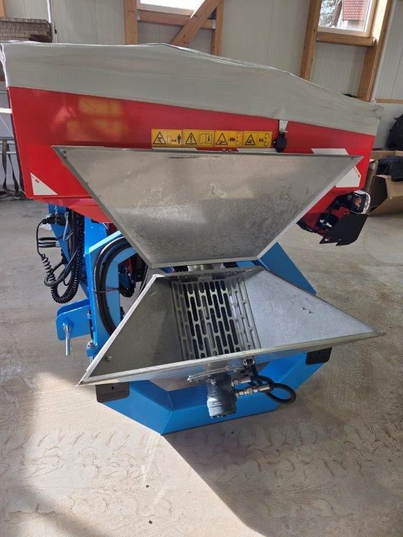 1000 Liter Fronttank mit Elektrischen Antrieb Steruerung über Isobus, Geschwindigkeit mit Radarsensor, Turbine mit Hydraulischen Antrieb, Dosiereinheit aus Niro, Licht mit Arbeitsscheinwerfer, Seitliche Befüllschnecke mit hydraulischen Antrieb, Mehrpreis für 600 Liter Aufsatzrand 580,-- klappbarer Beladesteg vorne.